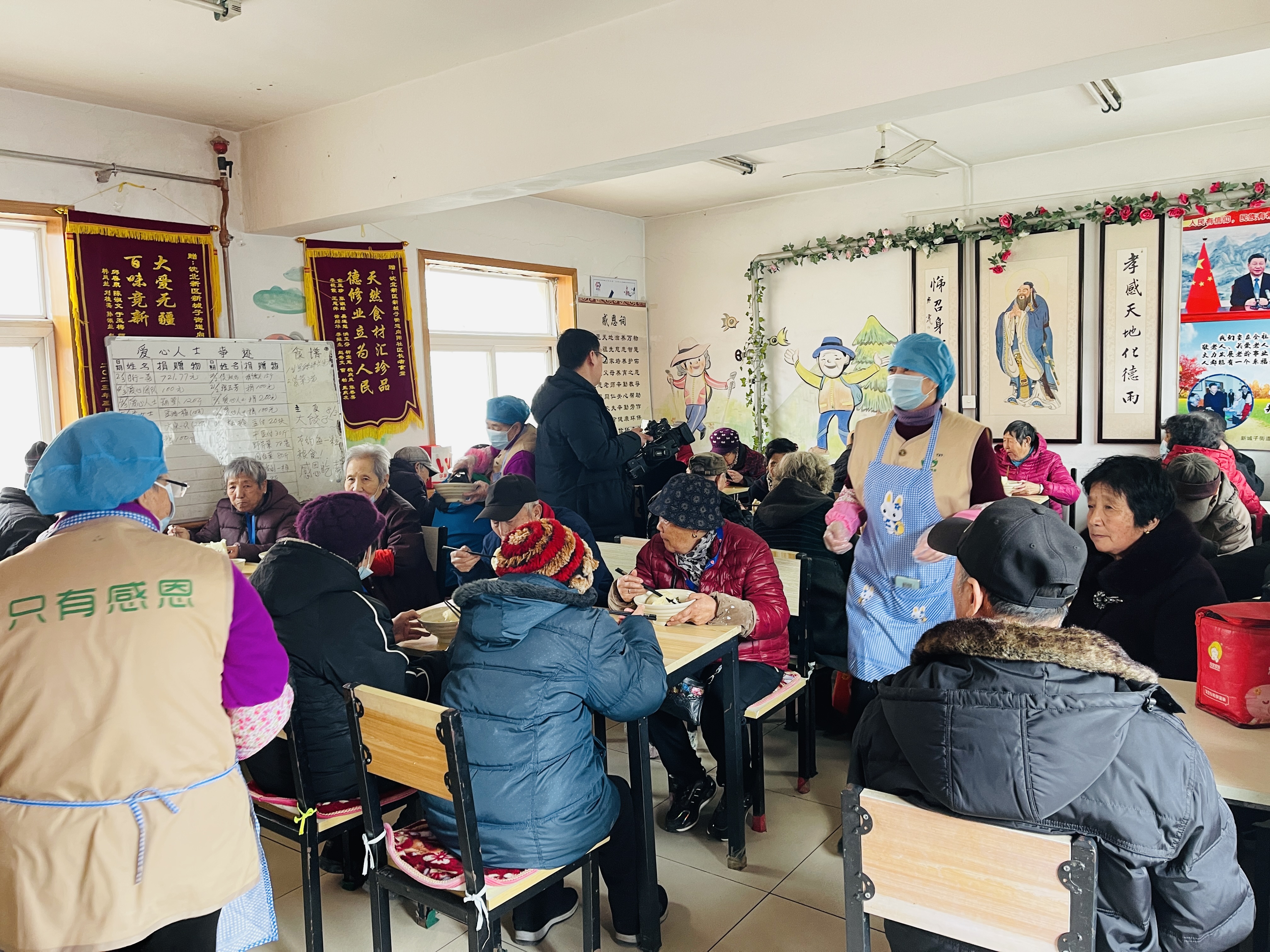 每天临近中午时分,食堂内都会坐满了老人,外面还有七八位老人等位,这就是沈北新区新城子街道向阳社区长者食堂。食堂2019年开业至今,每天中午为75岁以上的老人提供免费午餐,四年如一日。